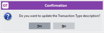 - In the Confirmation window, choose whether to update the transaction type descriptions: